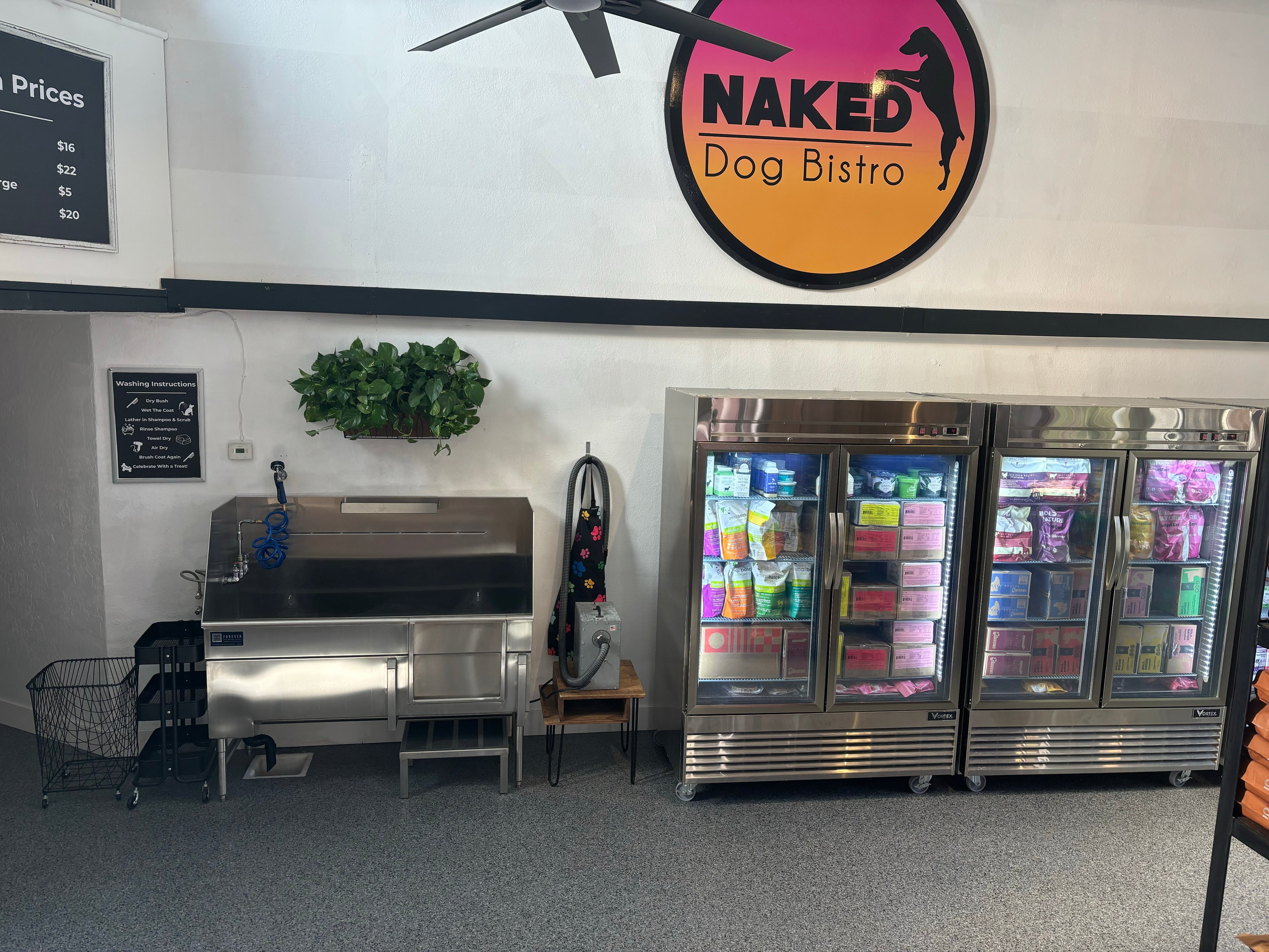 The Local Hub for Dogs of Laguna Beach. We offer the best self-service dog washing experience in Laguna Beach. Our facilities contain 3 stainless-steel dog tubs, a selection from our high-quality shampoos and brushes, water-absorbent microfiber towels and commercial blow dryers to complete the job! We specialize in dog nutrition, offering a wide assortment of raw and cooked fresh organic pet food, nutrition consultations, and numerous chew/treat options. You'll also find fresh baked cookies and cakes in our display case for those special occasions. We love to treat our furry friends right and invite you to join our exciting and educational community.