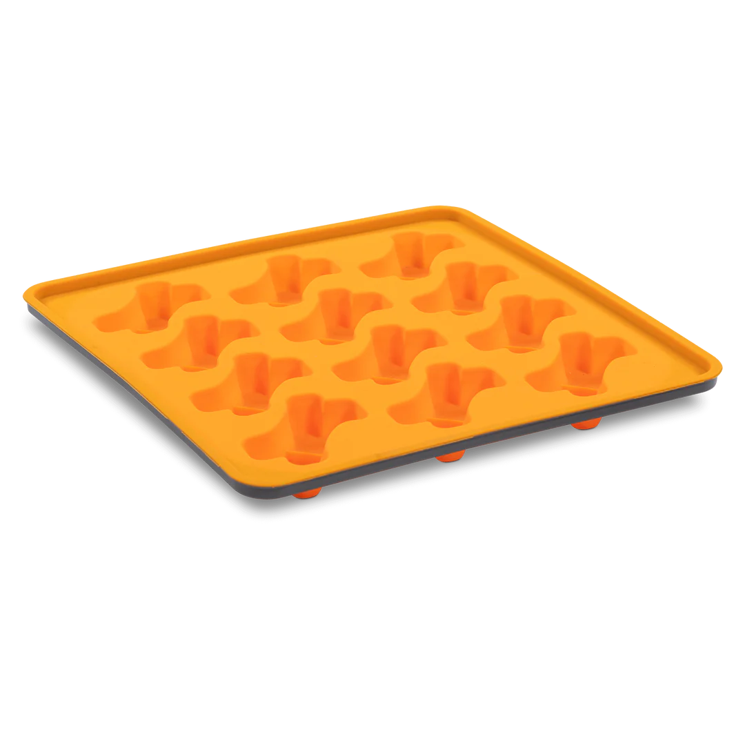 - 12 perfect sized treats per tray with 1 and 1/2 oz fill lines. Multiple trays can nest for easy storage or stack by turning one 90 degrees!